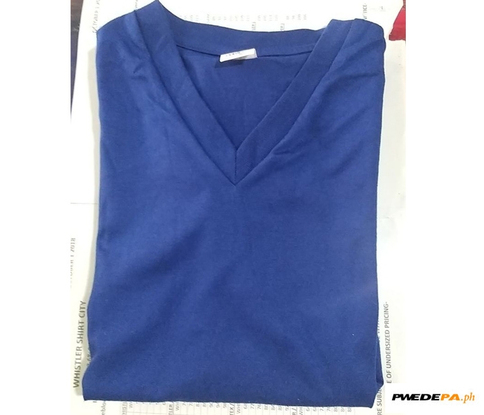 Plain Printable T-shirt Color Blue V Neck: small